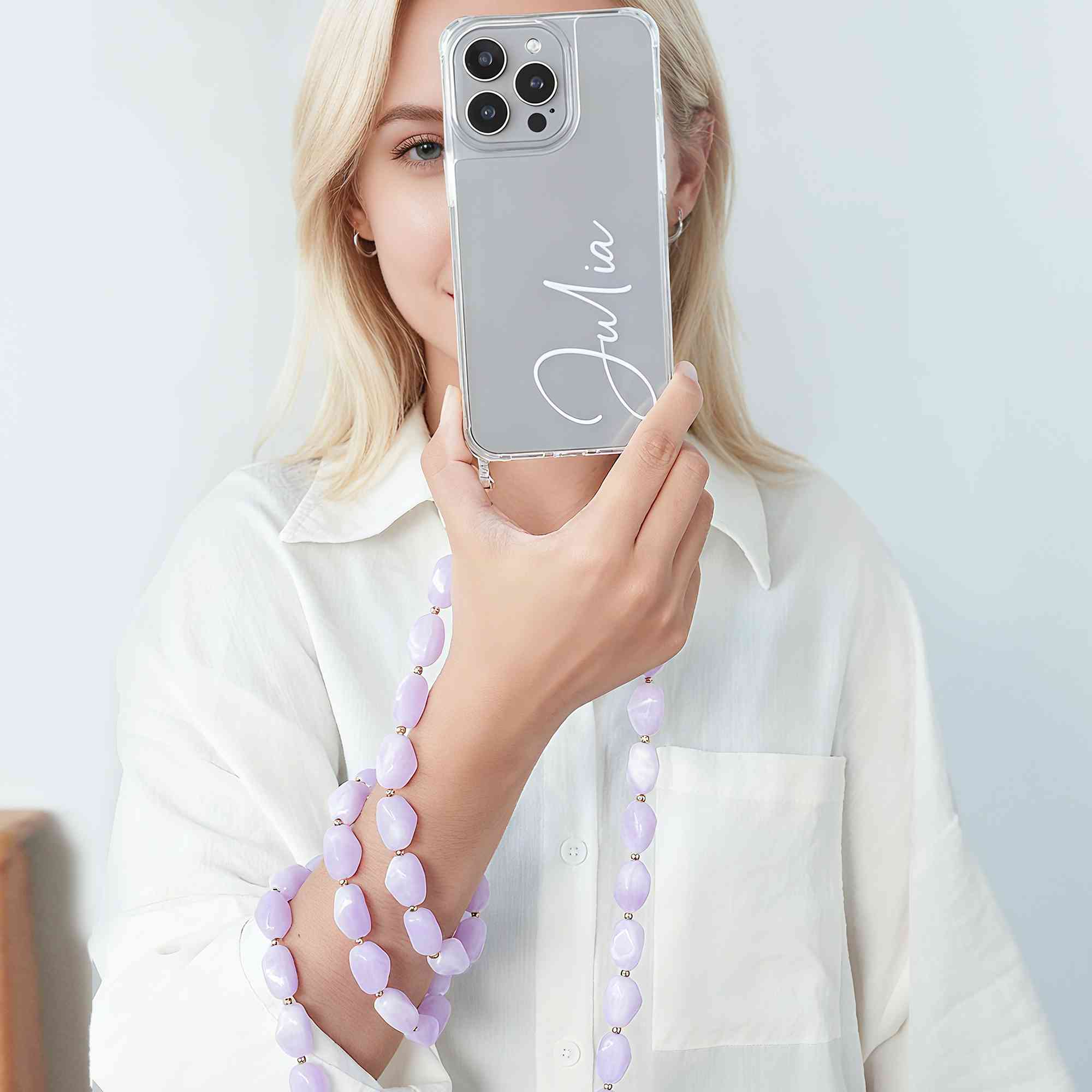 Distinctive Design - This elegant phone case showcases a trendy chain detail and can be personalized with a name, creating a stylish accessory that expresses your individuality. Combining fashion and practicality, it serves not only as protection for your phone but also as a statement piece that elevates your style.